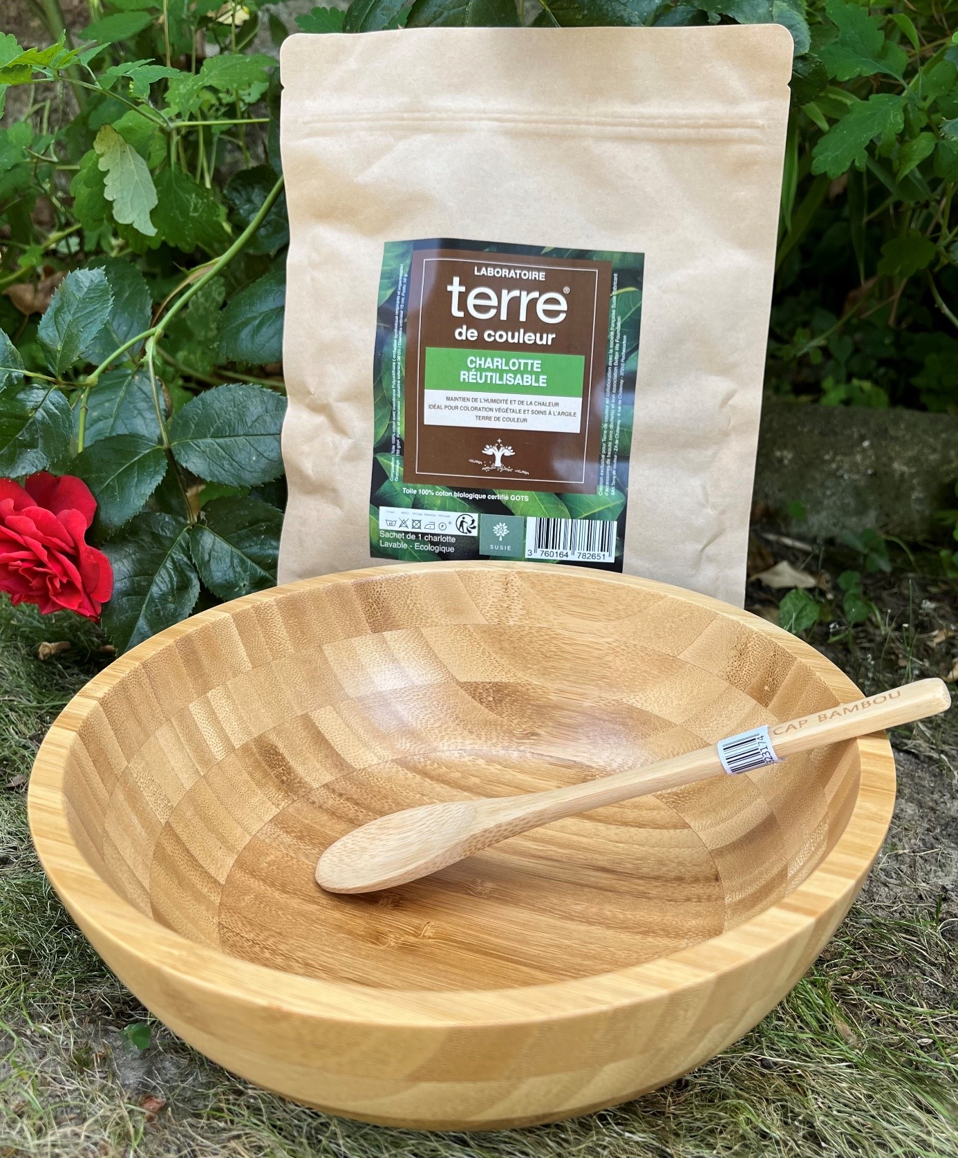 CHARLOTTE LAVABLE RÉUTILISABLE GOTS UNITE, EMBALLÉE INDIVIDUELLEMENT et CUILLÈRE EN BAMBOU