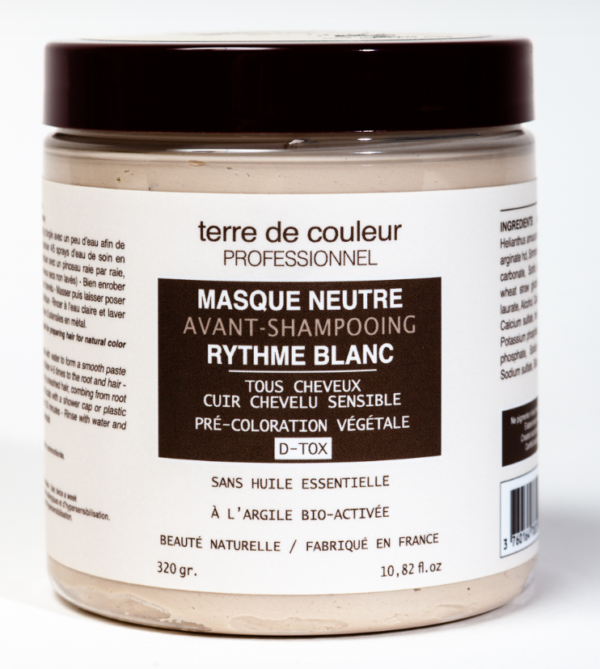 - Le Masque Neutre Rythme Blanc Terre de Couleur Professionnel apaise les inconforts du cuir chevelu et est le plus doux de tous les masques de la marque. Il peut être utilisé en toute sécurité par les personnes ayant des problèmes de santé, y compris celles qui suivent des traitements médicaux, une grossesse, des allergies, etc. UNIQUEMENT en suivant les recommandations et les conseils du médecin en charge du patient.